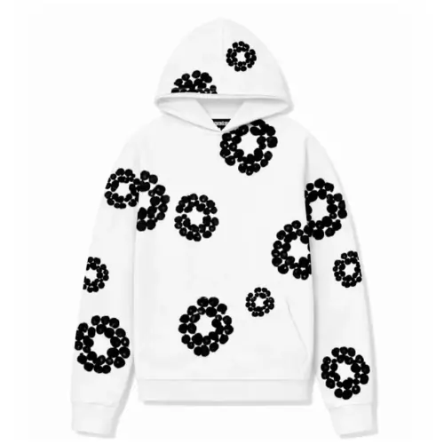 The Denim Tears White Hoodie delivers pristine contrast and cultural weight. Clean white cotton fleece serves as the canvas for the iconic black Cotton Wreath motif, creating striking visual depth front and back. This heavyweight essential maintains its structure while offering broken-in comfort from first wear. The oversized silhouette drapes effortlessly, complemented by a spacious kangaroo pocket, adjustable hood, and durable ribbed trims. Minimalist yet loaded with meaning, the Denim Tears White Hoodie anchors any rotation with versatility. Whether layered under outerwear or worn solo, this piece bridges heritage and contemporary street style.