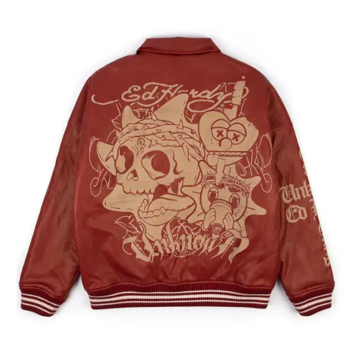 The Unknown London Red Leather Jacket presents a bold and courageous atmosphere to your outfit. It is made of high-quality synthetic leather; therefore, the premium feel and comfort are extended. The bright red color is very noticeable, and the distinctive rhinestone detail and embroidered logo give some glamour to the street. The jacket features a comfortable inner lining and a durable zip closure, making it not only fit for daily use but also for making a statement on a night out. Unknown London Red Leather Jacket, whether combined with jeans or cargo pants, is an ultimate mirror of UK streetwear trend with an edge.
